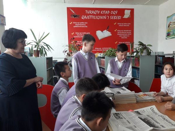 Тарих пәні мұғалімі Г.С.Жапабаева мен кітапханашы Г.Ж.Абилгазина бірлесе отырып 5 «Ә» сынып оқушыларымен «Сәкен тарих төрінде» тақырыбы…