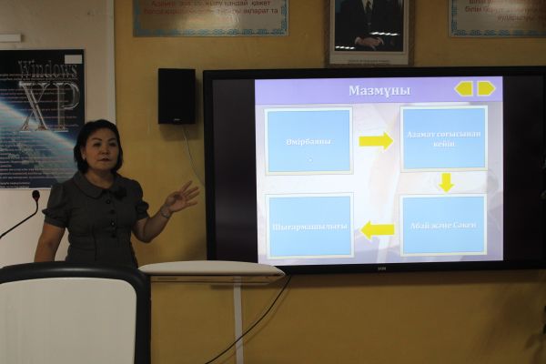Қазақ тілі мен әдебиет пәнінің мұғалімі А.Б. Кызырова 10 «А» сыныбында Абайдың өсиеттері арқылы қалай бизнесті бастауға болатыны жөнінде ойталқы сабағын өткізд…