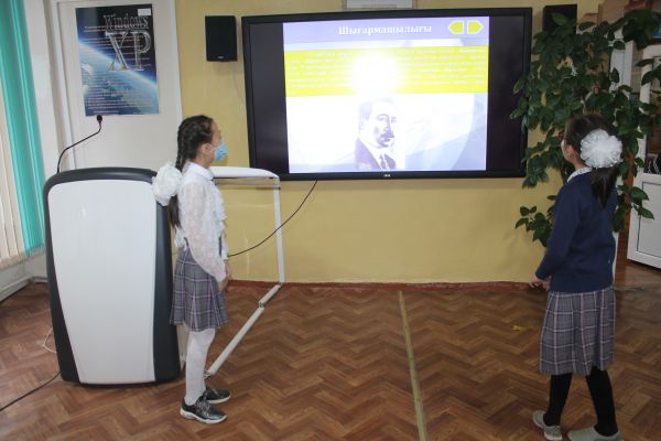 "Әлем таныған ұлы Абай" тақырыбында 10 "Б" сыныбында еске алу сабағы өтті. Абайдың отыз екінші қара сөзіндегі білім-ғылым үйренбек үшін керекті талаптар жайлы сөз қозғалды.