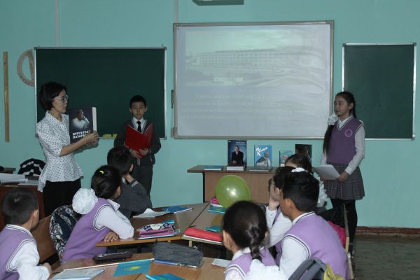 26.11.2018 күні 5 "В" сыныбында «Елбасы-ұлт мақтанышы» атты ашық тәрбие сағаты өтті. Тәрбие сағатының мақсаты болашақ ұрпаққа Елбасымыз Н.Ә.Назарбаев турал…