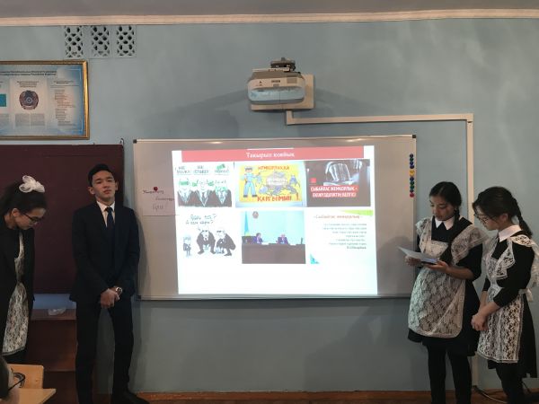 Жастар арасында сыбайлас жемқорлыққа қарсы мәдениетті қалыптастыру мақсатында  10 "А" сыныбында сынып сағаты өтті.