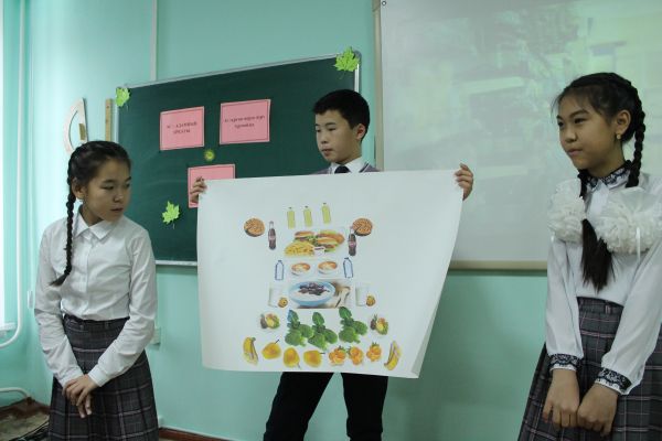Оқушылардың дұрыс тамақтану туралы білімдерін жүйелеу, кеңейту. Тамақтану гигиенасы туралы ережелерді түсіндіру мақсатында, 8 "Б" сынып оқушыларына "Дұрыс тамақтану - денсаулық кепілі…