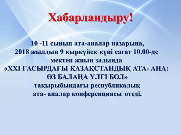 Алғашқы қоңырау Білім күніне арналған саптық жиын «Мәңгілік Ел» идеясы негізінде «Мен өз Отанымның патриотымын» тақырыбында өткізілді. Мекте…