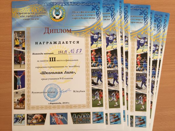 Қарағанды қаласының дене тәрбиесі және спорт бөлімі ұйымдастырған «Школьная лига» волейболдан қалалық жарыста №57 мектеп-лицей командасы ІІІ орынға ие болды. Жетекшілер: Му…
