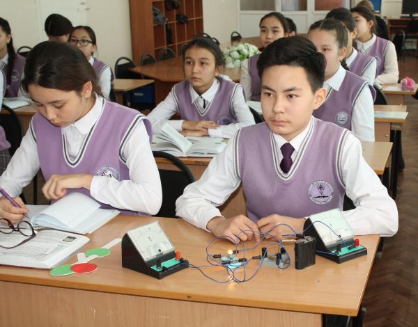 С.Саттаров атындағы №57 мектеп- лицейінде жоғары санатты физика пәні мұғалімі С.И. Жусупбекова 8 сыныптарға «Электр кернеуі. Вольметр. Электр тізбегі» тақ…