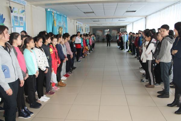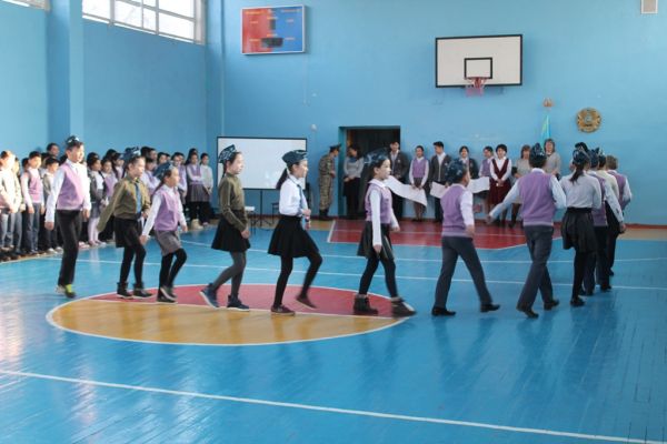 Бұқаралық-қорғаныс және әскери-патриоттық жұмыс айлығы басталып, «ЖАСҰЛАН» ұйымының оқушылары әскери сап түзеп, патриоттыққа байланысты өлен жолдарын оқып, Мадина Садвакасов…