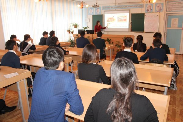Мектеп-лицейінің жас мамандары тәжірибелі мұғалімдерден әдістемелік шеберлікті үйрену мақсатында биология пәнінің бірінші санатты мұғалімі Скендирова А.Б.-ның 8 «Ә&raq…