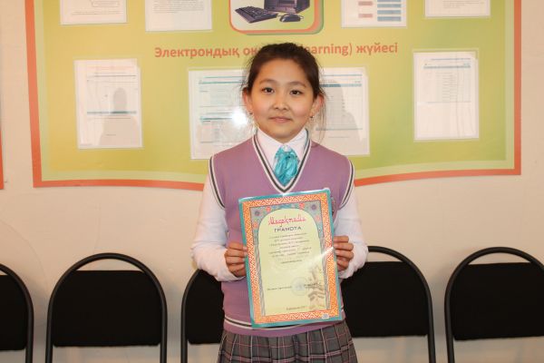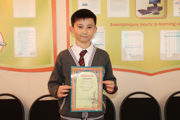 "Русский медвежонок - языкознание для всех" халықаралық байқауында, I-ші орын алғаны үшін: Зейнегабиденова Мархабат, Зейнегабиденова Анель, Келгенбаева Дина; II-ші оры…