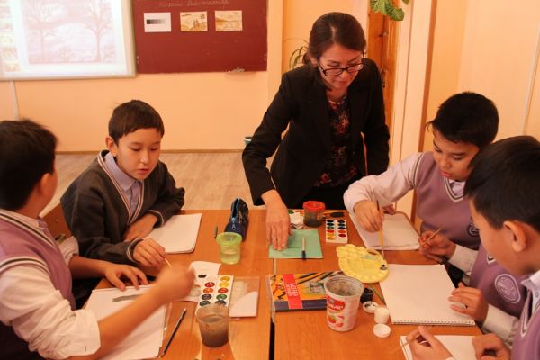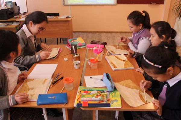 Эстетикалық пәндер апталығы аясында бейнелеу өнері пәнінің мұғалімі Мұқыжанова Н.М. 6 «Б» сыныбында «Түстік байланыстар» атты тақырыпта ашық сабақ өткізді.