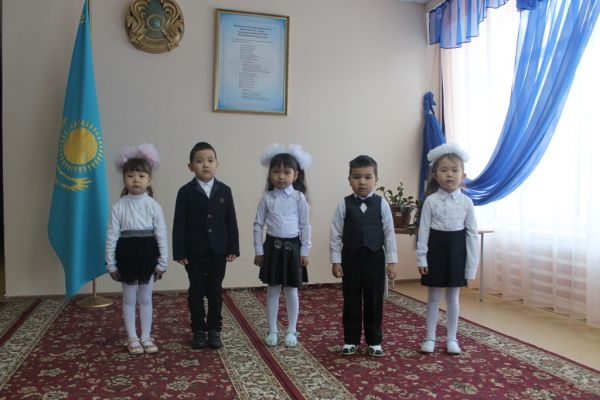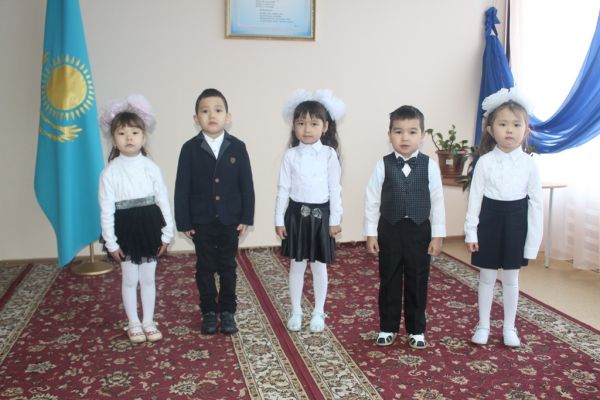 «Елін сүйген, Елі сүйген Елбасы» балалардың мәнерлеп оқу өңірлік (сырттай) байқауына шағын орталықтың «Бәйшешек» тобының тәрбиеленушілері: Қайырбекова Айару, Ырзықбай А…