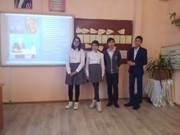 30 қараша күні орыс тілі мен әдебиеті пәнінің мұғалімі Байбалкенова А.А. 10 «А» сыныбында ашық сынып сағатын 1 желтоқсан- Тұңғыш Президент күніне арнап өтқізді. Осы сабақта о…