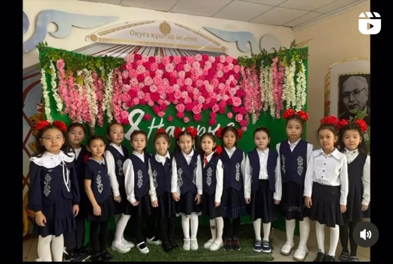 06.03.2024ж күні 2”А” сынып оқушылары мектеп ұжымын 8 наурыз халықаралық әйелдер күн мерекесімен жылы лебіздерін жолдайды.
