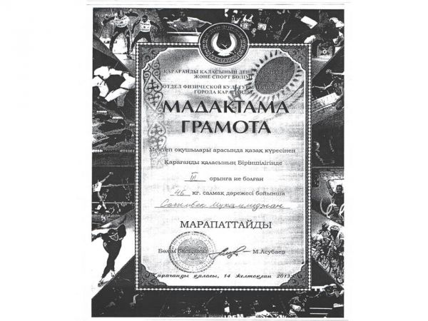 Қарағанды қаласының дене тәрбиесі және спорт бөлімі ұйымдастырған мектеп оқушылары арасында қазақ күресінен Қарағанды қаласының Біріншілігінде №57 мектеп-лицей командасы I-ші дәрежелі дипломға ие бо…