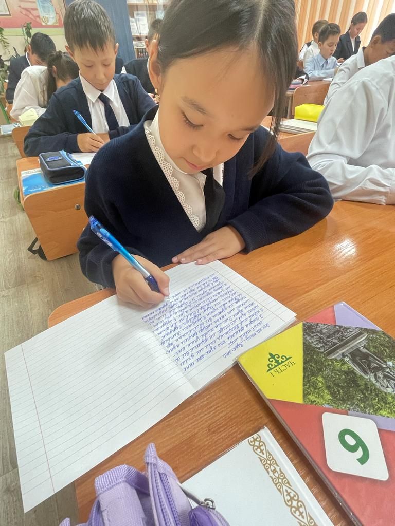 В рамках декады, посвящённой Дню языков народов Казахстана, учителем русского языка и литературы Жумагалиевой Б.А. среди учащихся 6 классов был проведён конкурс эссе на тему: «Язык-это окно в…