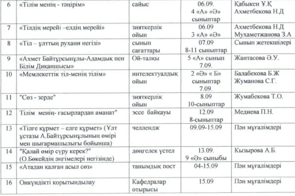 Мектеп-лицейдің «5 қыркүйек – Қазақстан халқы тілдері күні» мерекесіне арналған іс-шаралар жоспары.