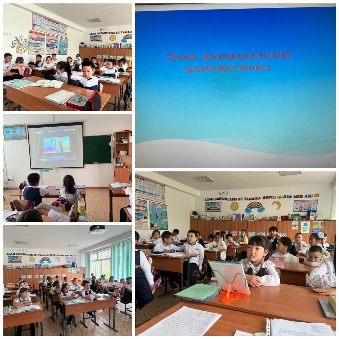 2 "Ә" сыныбында "Жазғы демалыс кезіндегі қауіпсіздік" атты сынып сағаты өтті. Мақсаты: балалардың жолда жүру, жағажайда, үйде жалғыз қалған жағдайларда қауіпсіз…