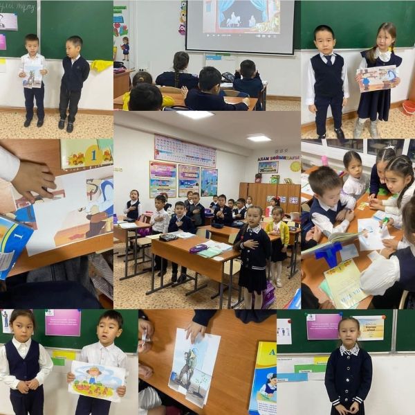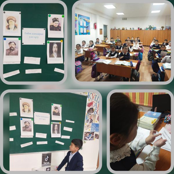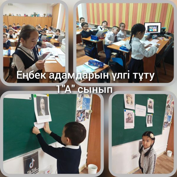 1"А" сынып оқушылары "Еңбек адамдарымен үлгі тұту" тақырыбында сынып сағаты өткізілді. Мақсаты: ардагерлер жолын оқушыларға үлгі ету. Ақын, жазушылардың өмірбаяны мен еңбек…