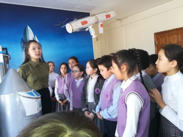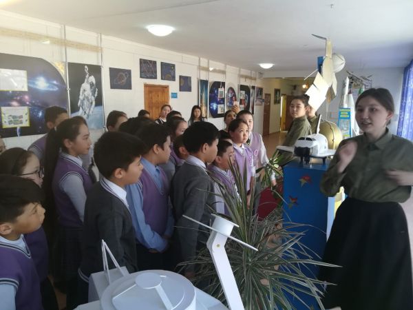 Мектеп-лицейінде   "Халықаралық космонавтика мен ғылым" күніне орай 5 сынып оқушылары  ғарыш залына  10 "А" сыныбының басқар…