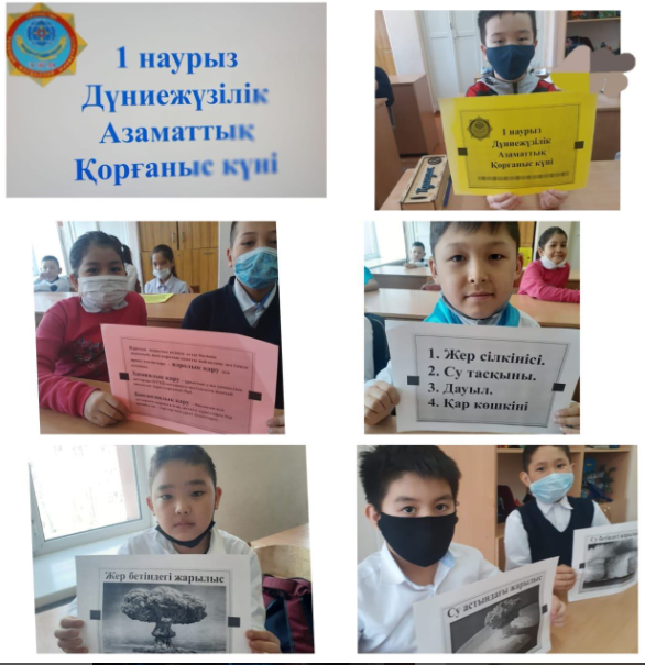 23 ақпан 2022 жылы 1 "Б" сыныбында Дүниежүзілік Азаматтық қорғаныс күніне орай сынып сағаты өтті. Мақсаты: Оқушыларға Азаматтық қорғаныс күні екенін айта отырып, қауіпсіздік шараларымен са…