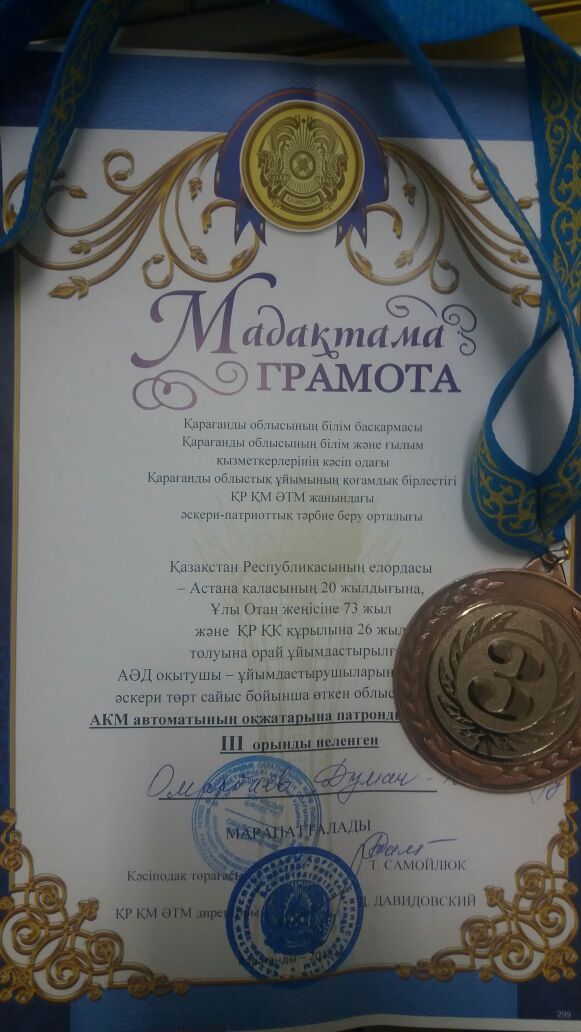 Қазақстан Республикасы Тәуелсіздігінің 26 жылдығы және Ұлы Жеңістің 73 жылдығы аясында 2018 жылдың 23сәуірде №101 мектеп-лицейінде, «Алау» әскери – сп…