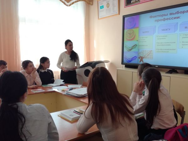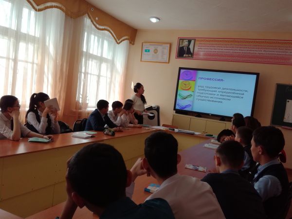 9 сәуірде 2018 жылы №53 ЖББОМЛ 9 сыныпта «Мамандықты бірге таңдаймыз» тақырыбына ашық сынып сағаты өткізілді.