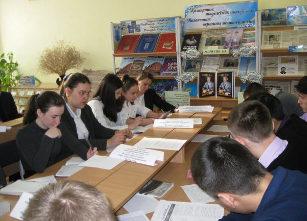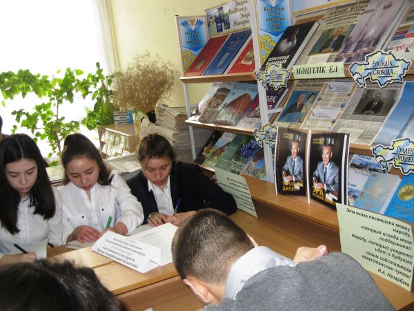 Нұрсұлтан Әбішұлы Назарбаевтың кітабына кітапханалық шолу мектеп кітапханасында өтті. 10-11- сыныптардың оқушылары жаңа кітаптың мазмұнымен, құрылымымен қызыға та…