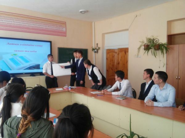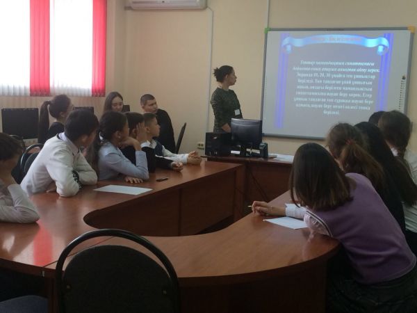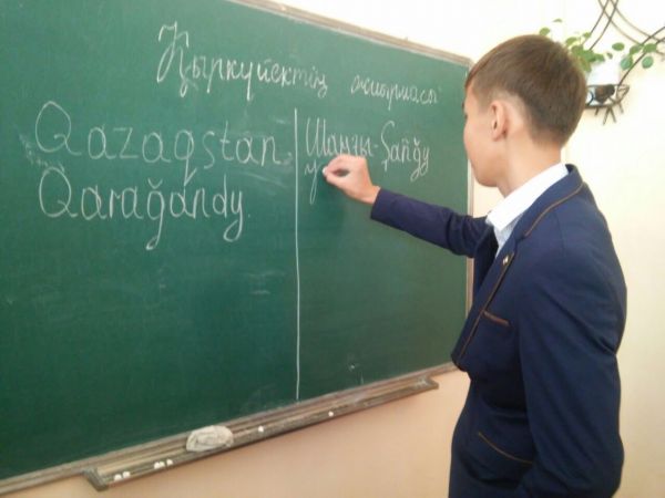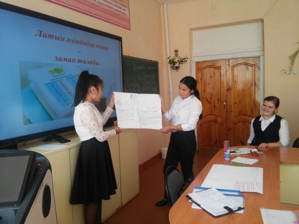 Мектебімізде қазақ тілі мен әдебиет пәнінің мұғалімі Д.О.Садуова ҚР Тілдер күніне арналған «Тіл – татулық тірегі» атты онкүндік аясында 10-11 сынып оқушыларымен «Латын әліпби…