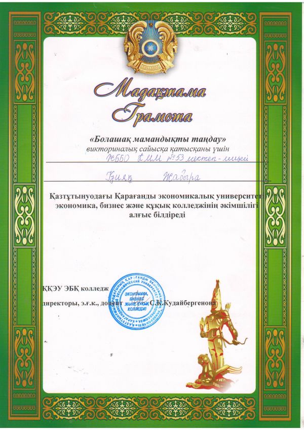 02 қазанда 2017 жылы  Қазтұтынуодағы Қарағанды экономикалық университеті экономика, бизнес және құқық колледжінде  «Болашақ мамандықты таңдау» тақырыбында  №53 мектеп &nda…