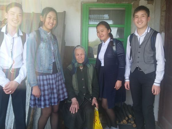 8А сынып оқушыларының соғыс ардагерін құттықтауы.