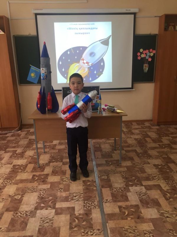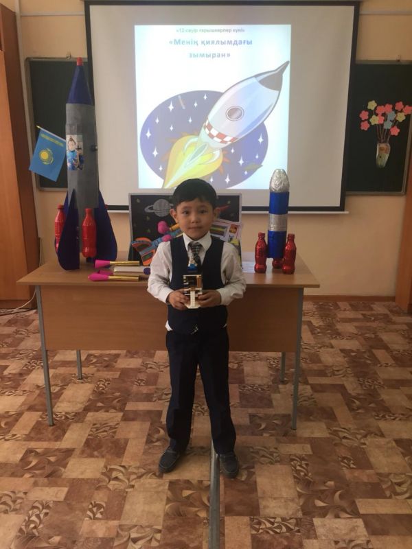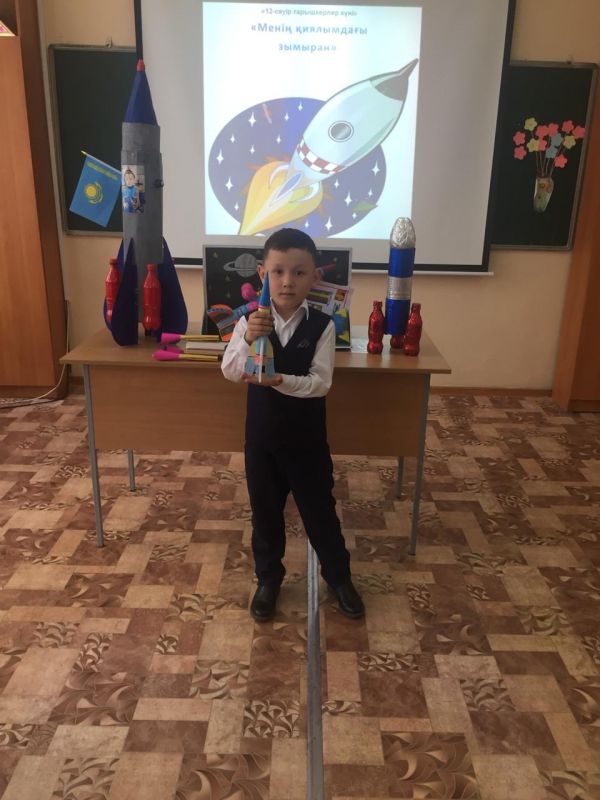 «Бастауыш-білім бастауы»атты апталықта 15 сәуір күні«12-сәуір ғарышкерлер күніне орай» 1- қазақ сыныптары арасында «Менің қиялымдағы зымыран» атты шығармашы…