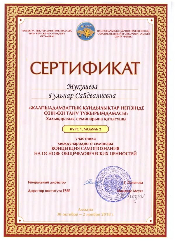 Алматы қаласында 26 қазаннан – 2 қарашаға дейін «БӨБЕК» ҰЛТТЫҚ ҒЫЛЫМИ-ПРАКТИКАЛЫҚ, БІЛІМ БЕРУ ЖӘНЕ САУЫҚТЫРУ ОРТАЛЫҒЫНЫҢ ұйымдастыруымен «Өзін-өзі тану…