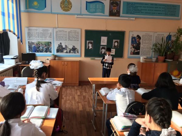 В КГУ СОШЛ №53 11.12.2019 г. в 5 «Ә» классе на день Независимости прошла линейка на тему «Моя Родина-Казахстан». Дети читали стихи, задавали вопросы по декабрьским собы…