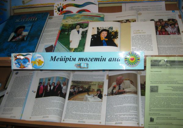 КГУ СОШЛ №53. Школьная библиотека информирует!Иллюстрированная экспозиция «Мейірім төгетін ана»знакомит читателей с автором проекта по возрождению нравственно-духовных ценностей«Өз…