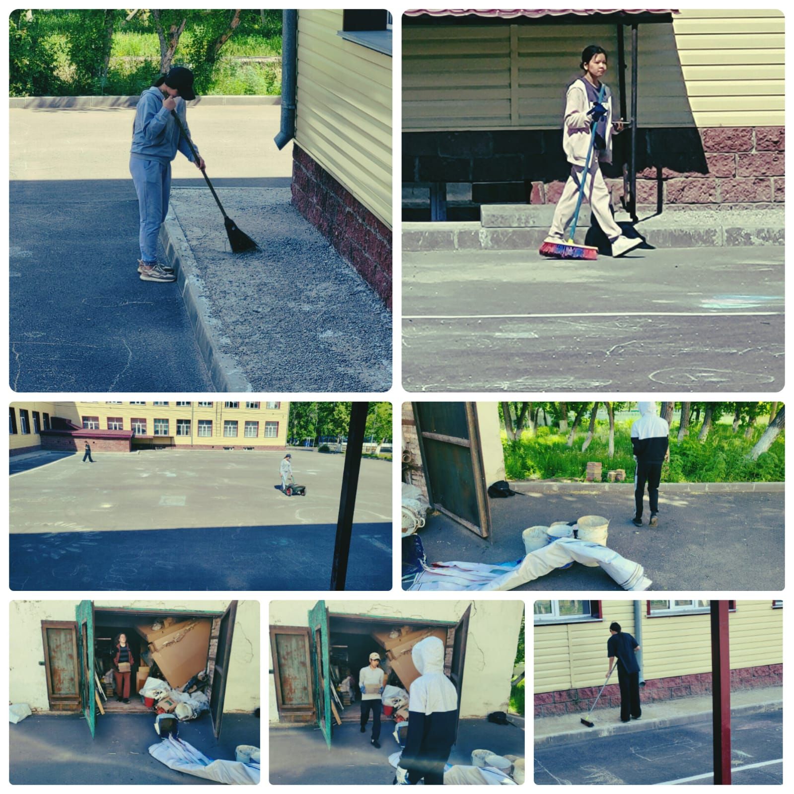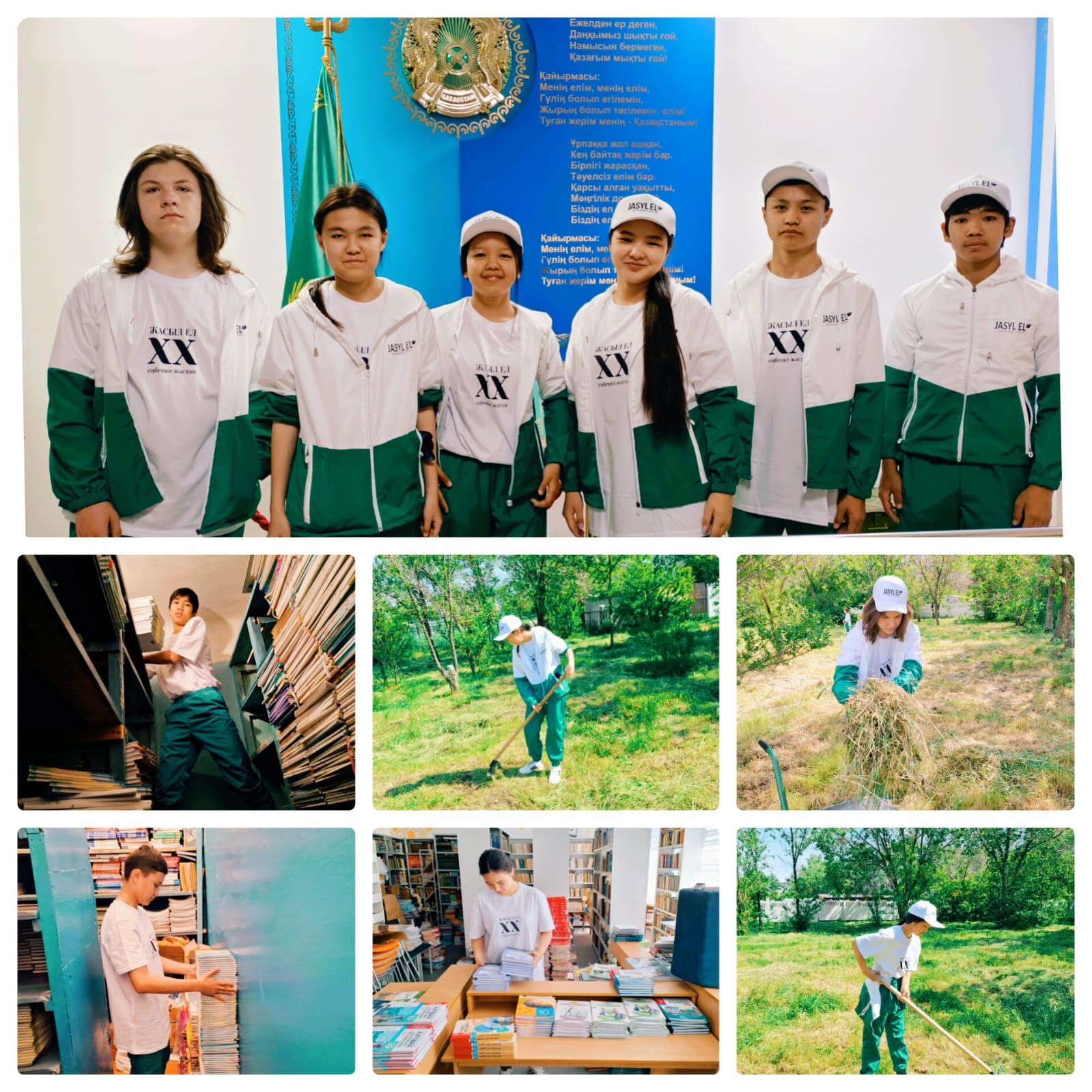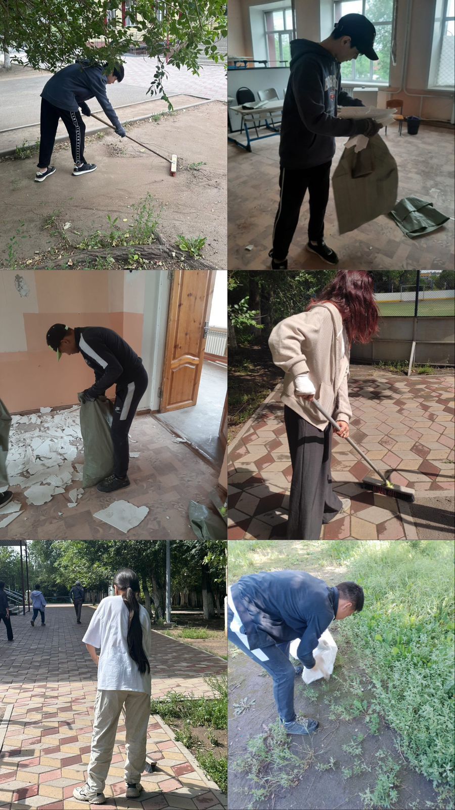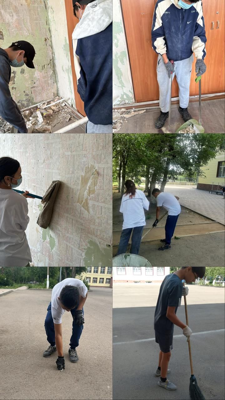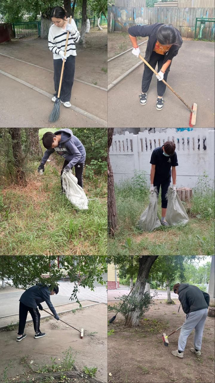 20 июня отряд молодежи "Жасыл Ел-2024" продолжает работу на территории школы.