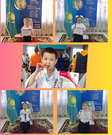 1-4, 5-8 сыныптар арасында өткен, қалалық "Өнер әлемі" атты байқауда орындаушылық шеберлігі үшін Асланқызы Гүлайым мен Асланқызы Аяна сертификатпен марапатталды. Талаптарыңа нұр жаусын!