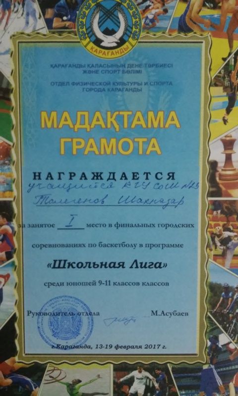 11 ноября 2017 года состоялся городской турнир по баскетболу среди учителей школ города, посвященный 28-летней годовщине вывода Советских войск из Афганистана и 25-летней годо…