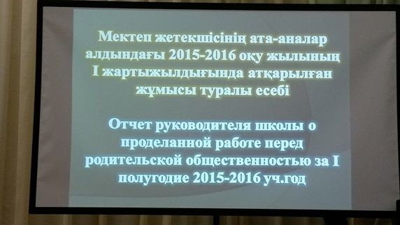 2016 жылдың 05 қаңтар айында сағат 12.00-де №23 орта мектебінің мәжіліс залында Республикалық қоғамдық тыңдаулар аясында ата-аналар қоғамдастығы өкілдері алдында мектеп директоры Ашыкбаев Н.Ж.