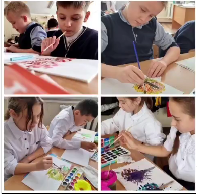 3Г,4з,4г сынып оқушылары мұғалім О.А. Горбунованың жетекшілігімен "кляксография"техникасындағы жұмыс әдістерін зерттеді.