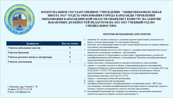 Информационный лист о проведении конкурса на занятие вакантных и временно вакантных должностей