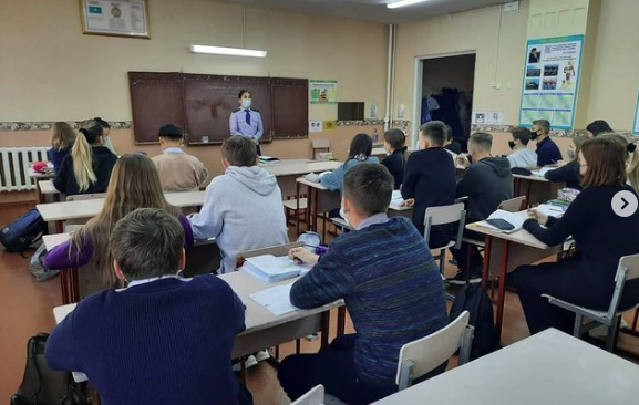 Оңтүстік-Шығыс ПС Жергілікті полиция қызметі бөлімі ювеналды полиция тобының учаскелік полиция инспекторы полиция капитаны Скакова Қызғалдақ Бауыржанқызы жоғары сынып оқушыларымен профилактикалық әңгімелесу жүргізді.