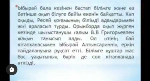 "Бір ел-бір кітап" акциясы аясында 4"А"-сынып оқушысы Сағынтай Нұралы. Ы. Алтынсариннің "Өнер білім-бар жұрттар" өлеңін оқыды.