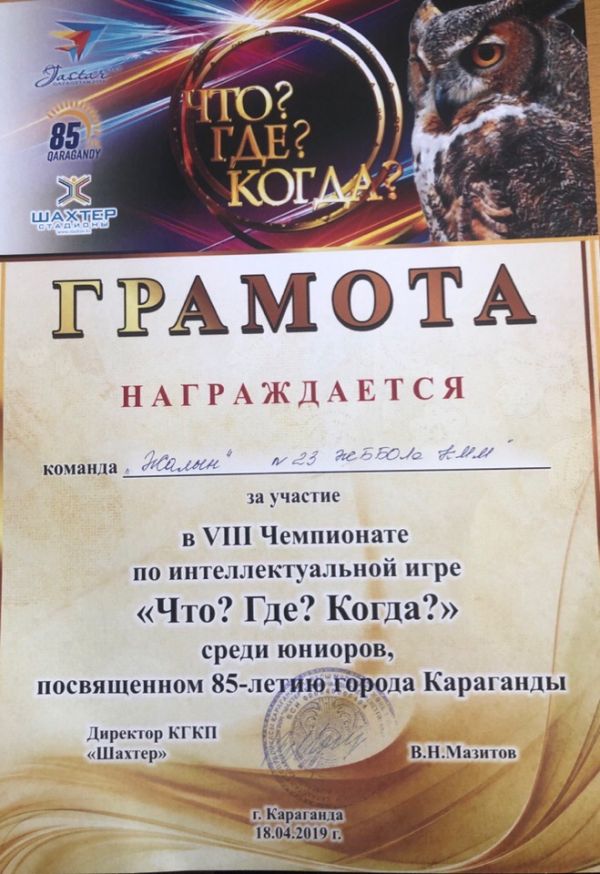 Игра "Что?Где?Когда?",посвящённая 85-летию нашего родного города !