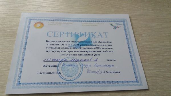 27 октябяр 2018 года ученики нашей школы приняли активное участие в городском конкурсе исследовательских работ «Тұлғатану-2018».