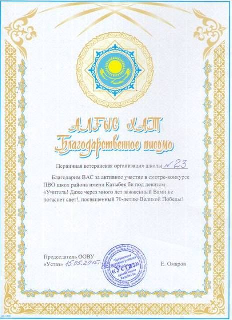 15 мая 2015 года в гимназии №3 были подведены итоги смотра-конкурса на «Лучшую первичную ветеранскую организацию» школ района им. Казыбек би. Мероприятие пр…