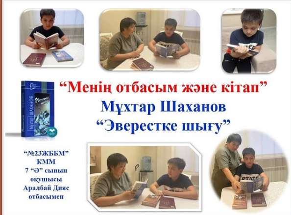 Фотоколлаж.«Менің отбасым және кітап» "№23ЖББМ" КММ 8 "Г" сынып оқушысы Сусан Камилегогчин.Отбасымен кітап оқып отырған сәтті. Жетекшісі: Алимбаева Д.А.