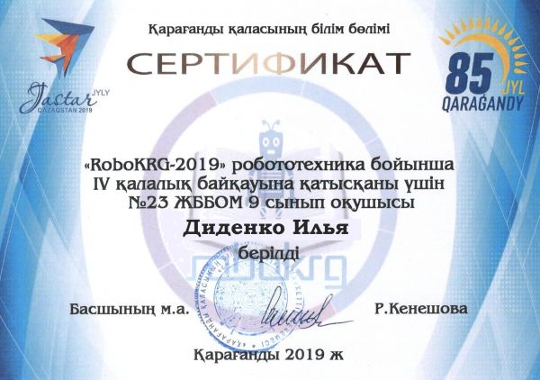 Қарағанды қаласы білім бөлімінің ұйымдастыруымен өткен «RoboKRG-2019» қалалық робототехника байқауында мектебіміздің "спутник" командасы Бо…