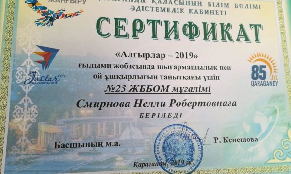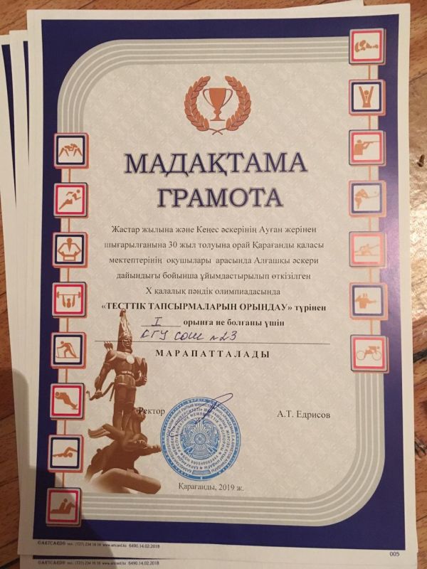 №23 орта мектепте «SARYARQA» телеарнасының редакторы, Қазақстан Республикасы Ақпарат және коммуникациялар министрі Дәурен Абаевтың жарлығымен «Ақпарат саласының үздігі»…