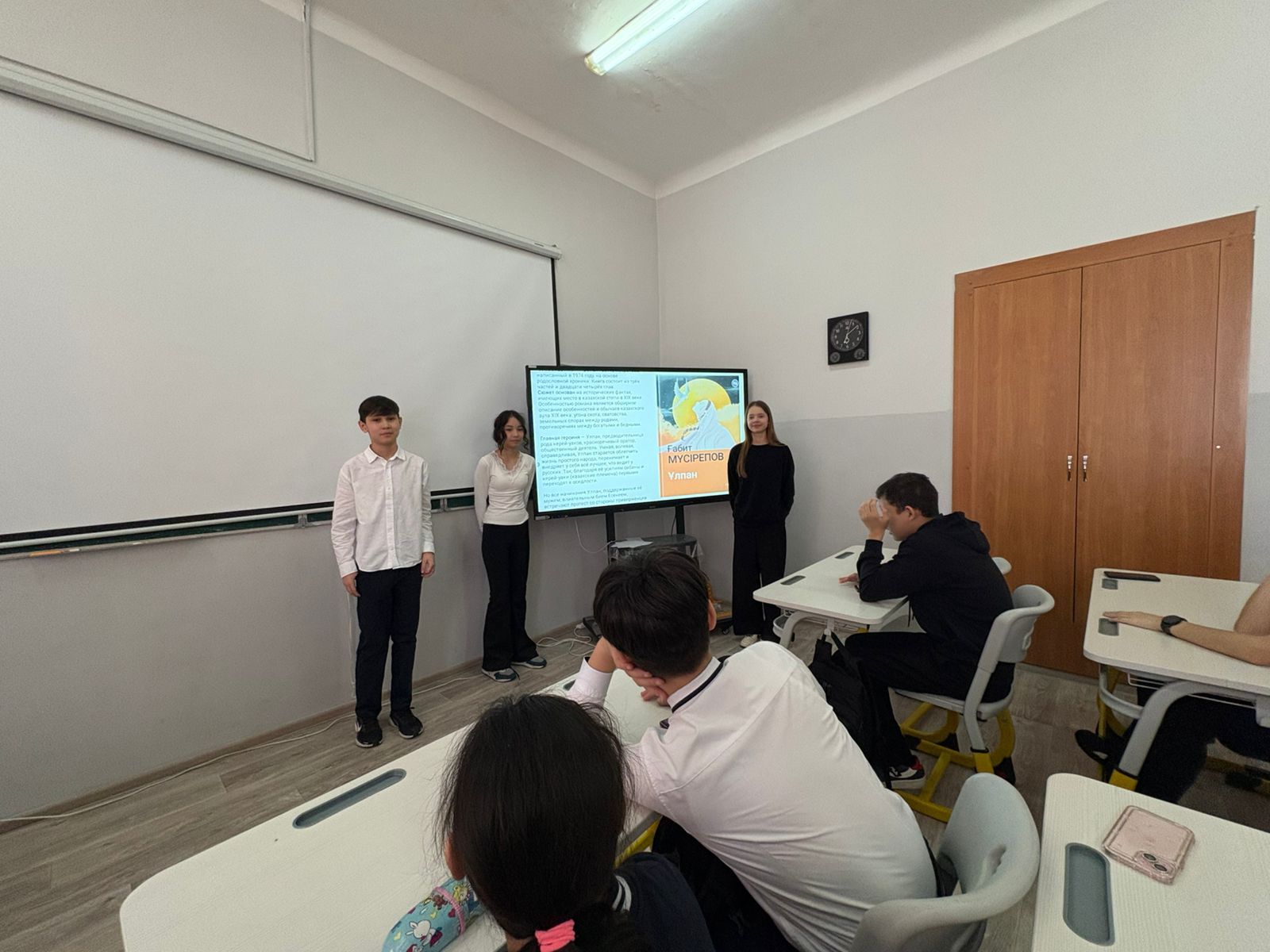 «Кітап оқитын ұлт» жобасы аясында 9 «А» сынып оқушылары қазақтың көрнекті ақыны әрі жазушысы Сұлтанмахмұт Торайғыровтың «Қамар сұлу» шығармасын талқылады.