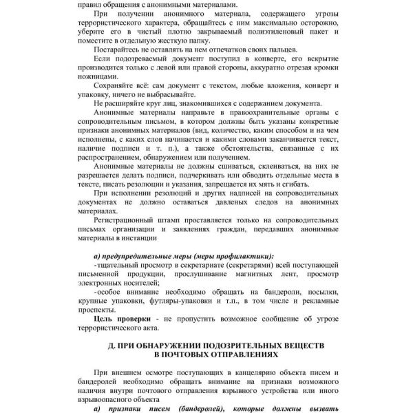 ПАМЯТКА «ПРЕДУПРЕДИТЕЛЬНЫЕ МЕРЫ И ДЕЙСТВИЯ РУКОВОДИТЕЛЯ И ПЕРСОНАЛА ОБЪЕКТОВ УТО ПРИ УГРОЗЕ СОВЕРШЕНИЯ АКТА ТЕРРОРИЗМА»