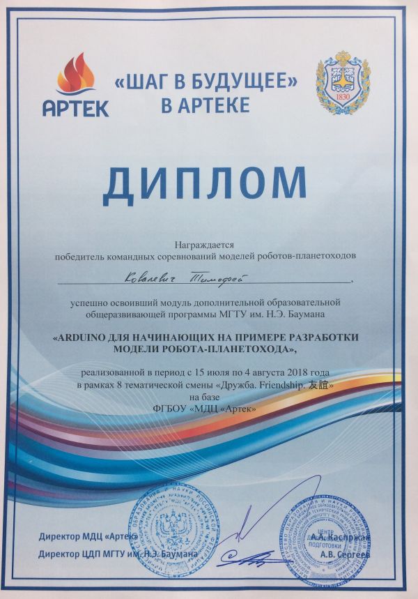 Благодаря своим победам в 20ти научных конкурсах и олимпиадах Тимофей был награжден бесплатной путевкой в детский лагерь «Артек» от МГТУ им. Баумана. В «Артеке» Тимофей…